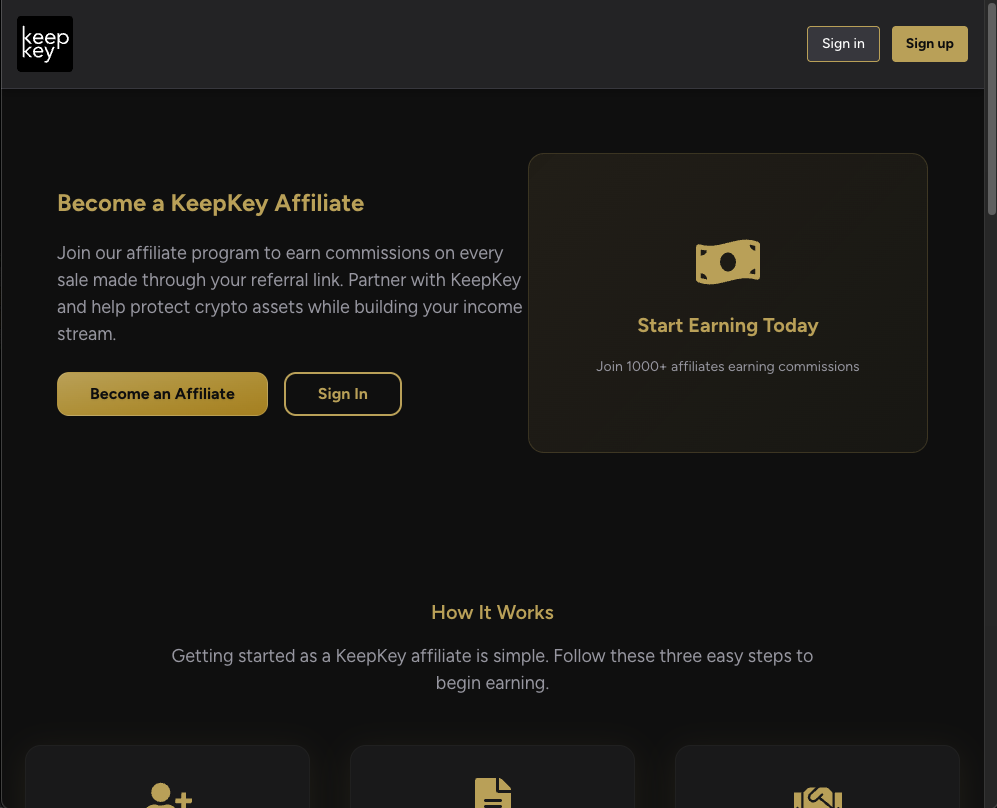 Start your affiliate journey today and join over 1,000 successful KeepKey affiliates earning commissions while promoting cryptocurrency security!